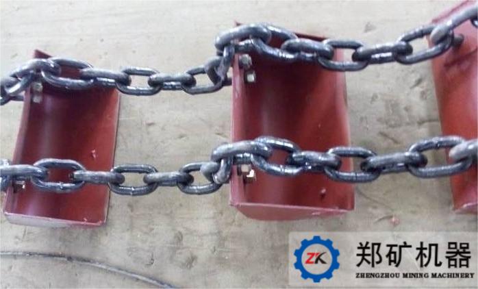 環(huán)鏈?zhǔn)禽^常用的一種牽引件,它的結(jié)構(gòu)和制造比較簡(jiǎn)單,與料料的鏈接也很牢固。但環(huán)鏈相互接觸處易磨損,降低鏈的強(qiáng)度,且運(yùn)行不夠平穩(wěn)。